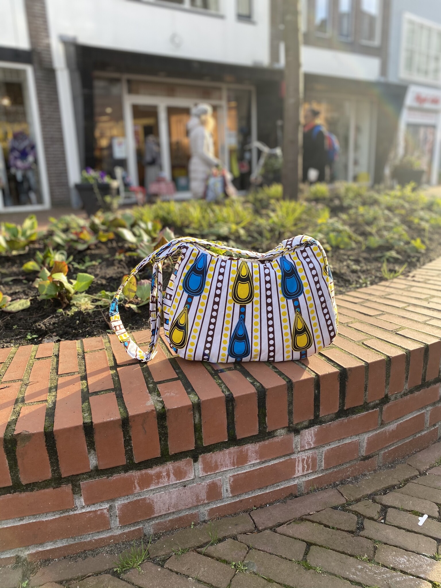 Hobobag Kumasi is gemaakt van een kleurrijke Afrikaanse stof. Deze tas is zowel over de schouder als crossbody te dragen. Bij Hobobag Kumasi zit een klein tasje voor bijvoorbeeld je lip gloss of telefoonoplader. En binnen in de tas zitten nog twee handige opbergvakjes. Een fijne tas die vanwege zijn formaat handig is voor een dagje weg. Neem deze bijzondere tas mee naar je werk of geef kleur aan je outfit tijdens een feestje.