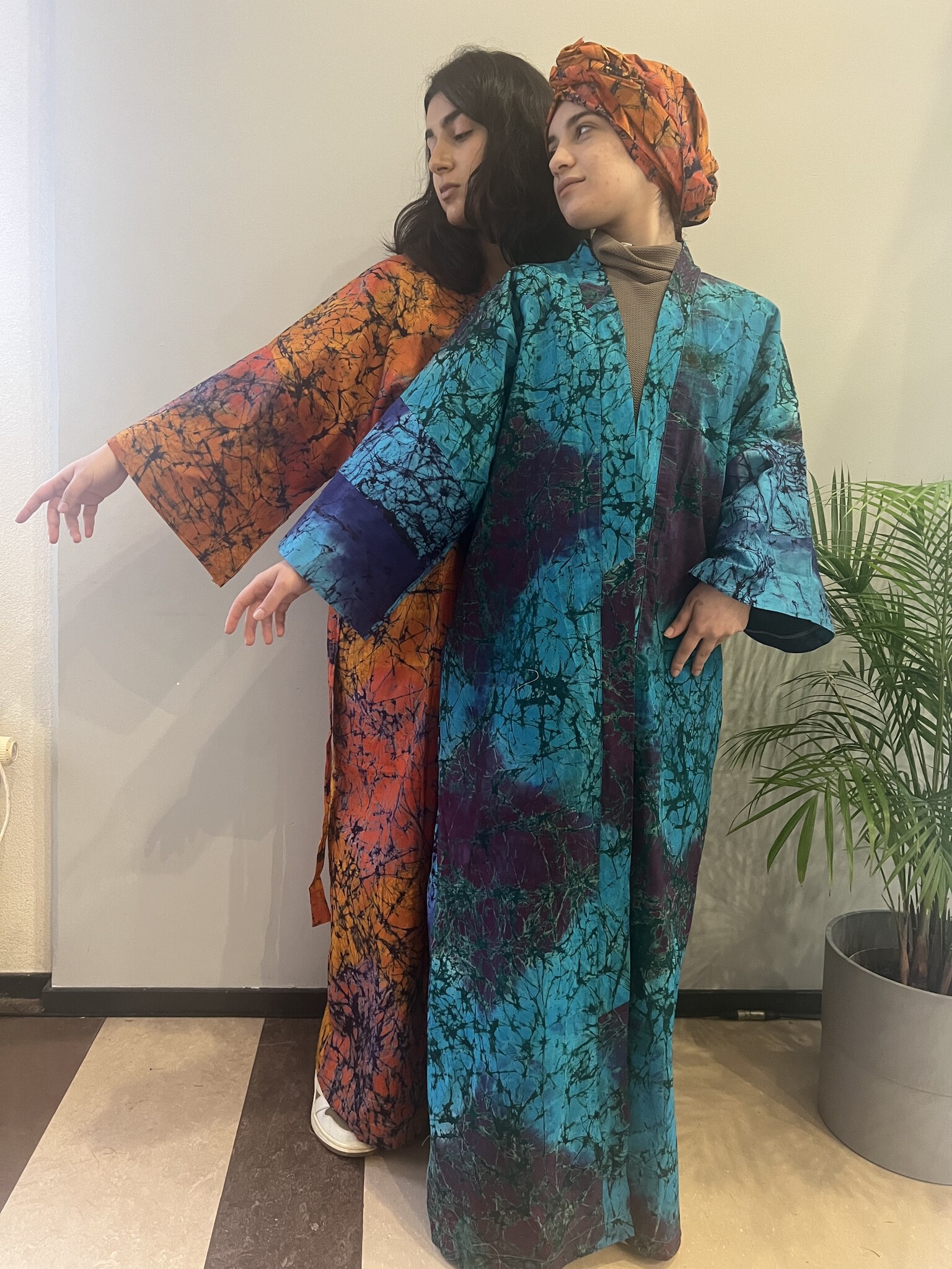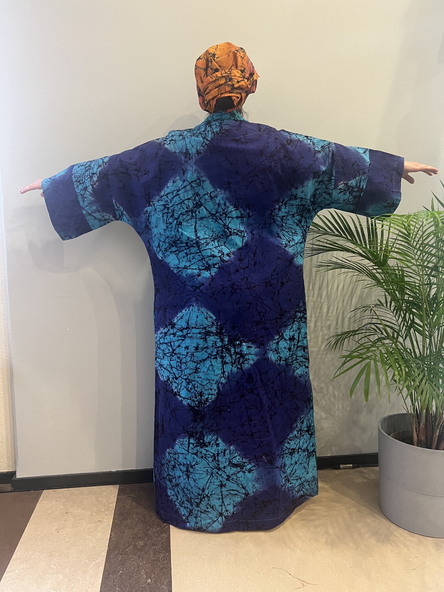 Wat deze kimono bijzonder maakt, is het gebruik van tie dye katoen uit Ghana. Tie Dye is een verftechniek die een heel speciaal effect geeft op stoffen. Dit betekent dat elke kimono een uniek meesterwerk is, met zijn eigen karakter en verhaal. Bij Dinkra geloven we in het creëren van iets moois van kleurrijke stoffen uit Ghana. Met deze kimono draag je niet alleen een prachtig kledingstuk, maar ook een stukje ethische mode.