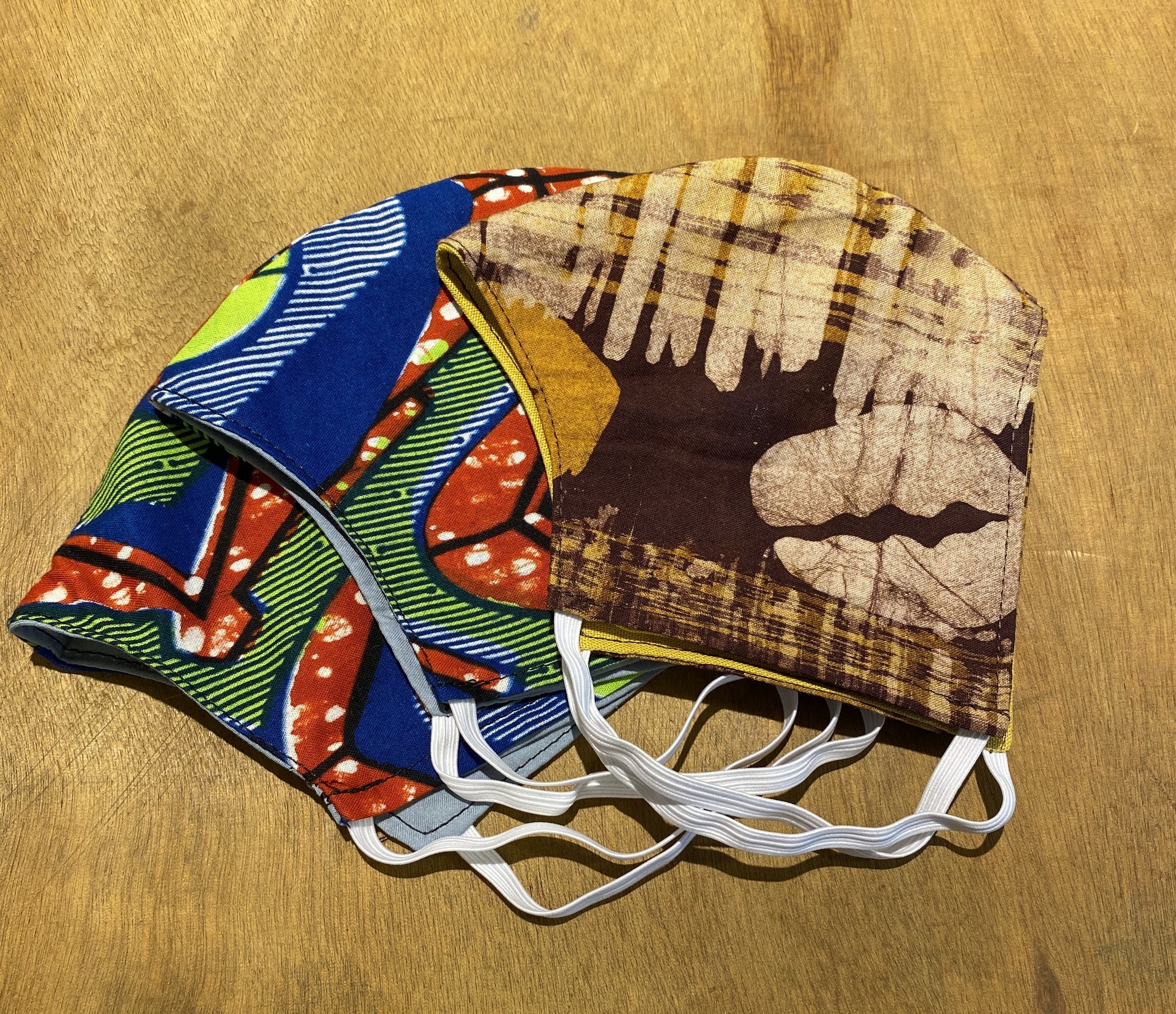 Dit mondkapje is uitsluitend voor particulier gebruik en dus niet voor medische doeleinden handgemaakt van dubbellaags katoen van een Afrikaanse print. Het kapje sluit volledig over neus en mond. Het kapje is eenvoudig op te zetten met de elastieken lusjes. Het mondkapje is machine wasbaar tot 95 graden en herbruikbaar.